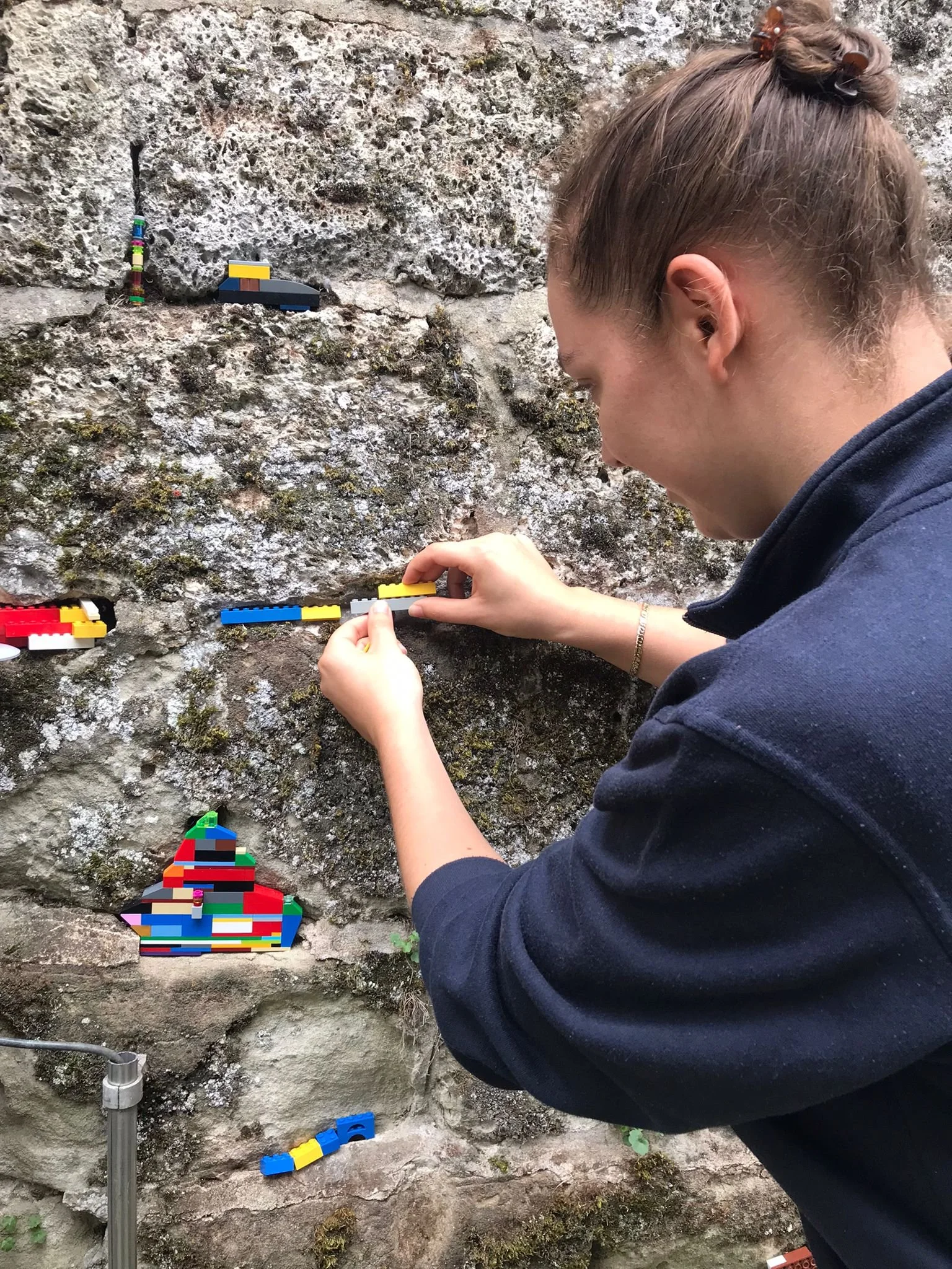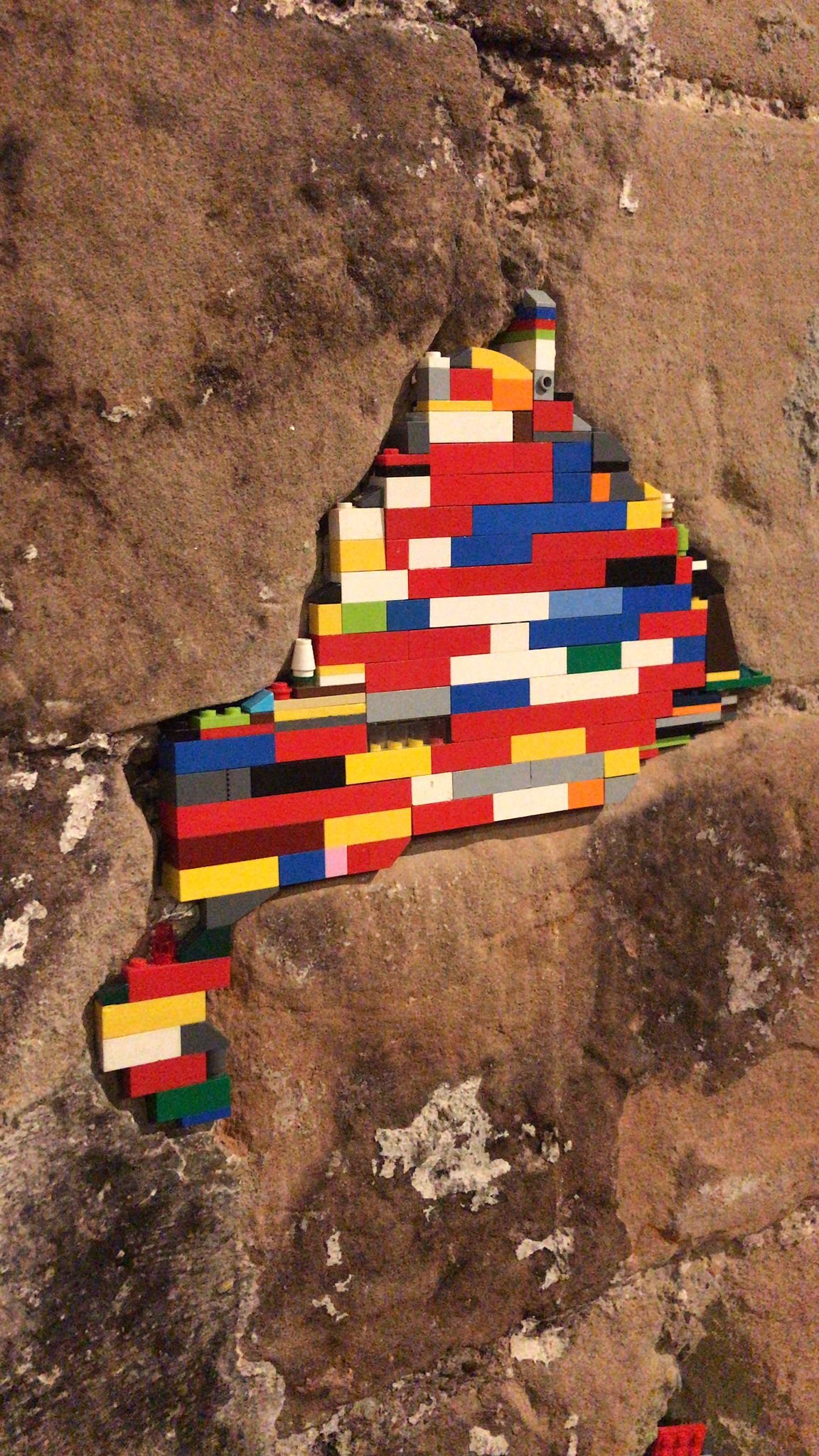 In collaboration with L'Echandole, Ramptogo used these Lego® pieces to “repair” the gaps in the castle’s walls and draw attention to the preservation of public spaces and monuments.